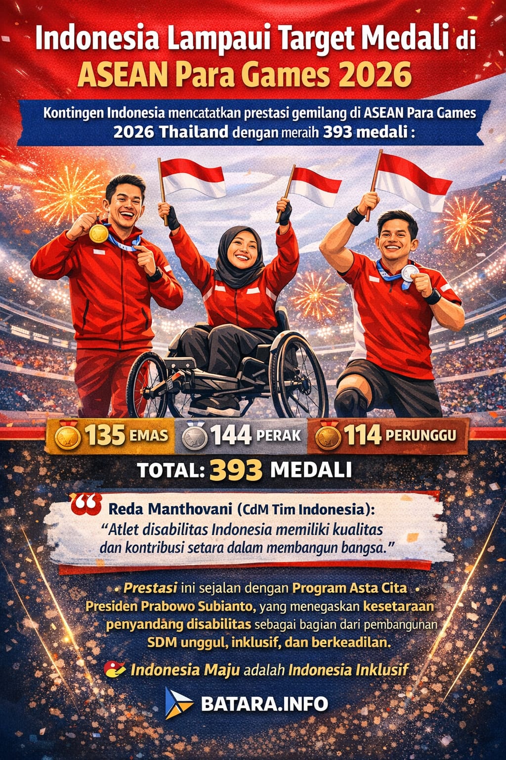 Penulis: Gembong WiroyudoInfografis: diolah AI BATARA.INFO, Jakarta —Kontingen Indonesia kembali menorehkan prestasi membanggakan di ajang ASEAN Para Games 2026 yang berlangsung di Nakhon Ratchasima, Thailand. […]