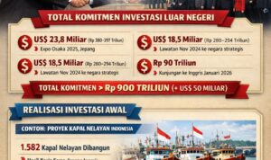 Total kasar komitmen investasi dari kunjungan luar negeri hingga 25 Januari 2026 diperkirakan melebihi Rp900 triliun — atau setara dengan lebih dari US$50 miliar.